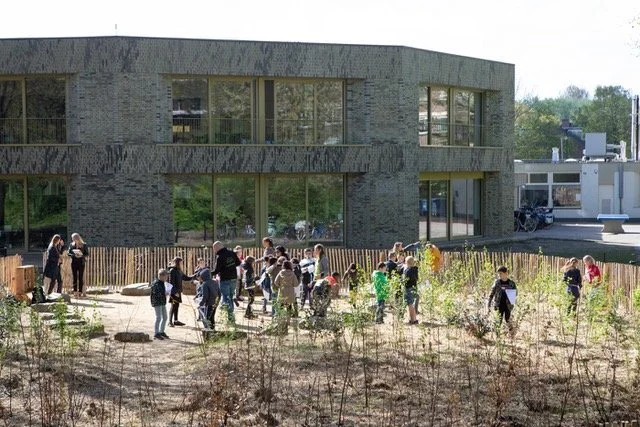 Het is woensdagochtend en een groep leerlingen van basisschool de Molenwiek zit op grote rotsblokken te luisteren naar een gastdocent van IVN Natuureducatie. De zon schijnt en een paar merels proberen de gastles te overstemmen met vrolijk gefluit vanuit de omringende bomen. De geur van vers groen en lente hangt in de lucht en als je de flats achter de bomen niet zou zien, zou je denken dat je in de duinen was of in het bos bij Groenendaal.