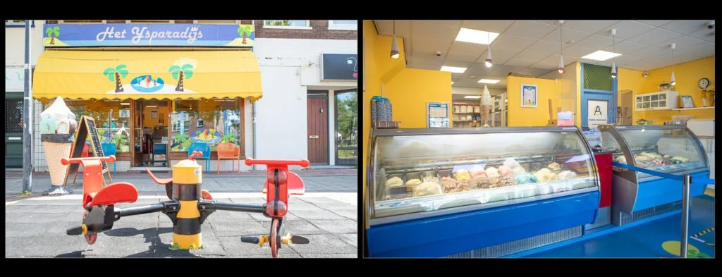 Wij starten bij het kleurrijke IJsparadijs in Haarlem Noord (Rijkstraatweg 344). Voor de ijssalon staan kleurrijke stoelen en is een kleine speeltuin voor de deur. Als wij binnenkomen worden wij hartelijk ontvangen door ijsmaker Coen. Hij vertelt dat deze ijssalon al sinds 2009 bestaat en dat hij zo'n 32 tot 36