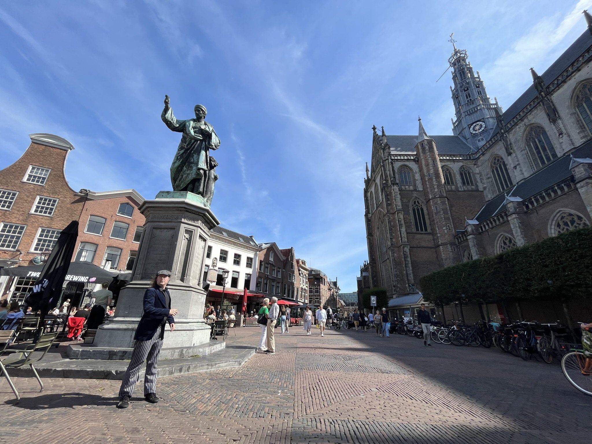 Het beeld van Coster midden op de Grote Markt in Haarlem