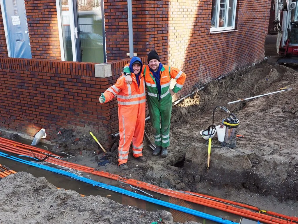 Vraag 2: Deze blije bouwers hebben meegewerkt aan een rij nieuwe huizen op een voormalig industrieterrein. Aan welke straat ligt deze rij huizen?