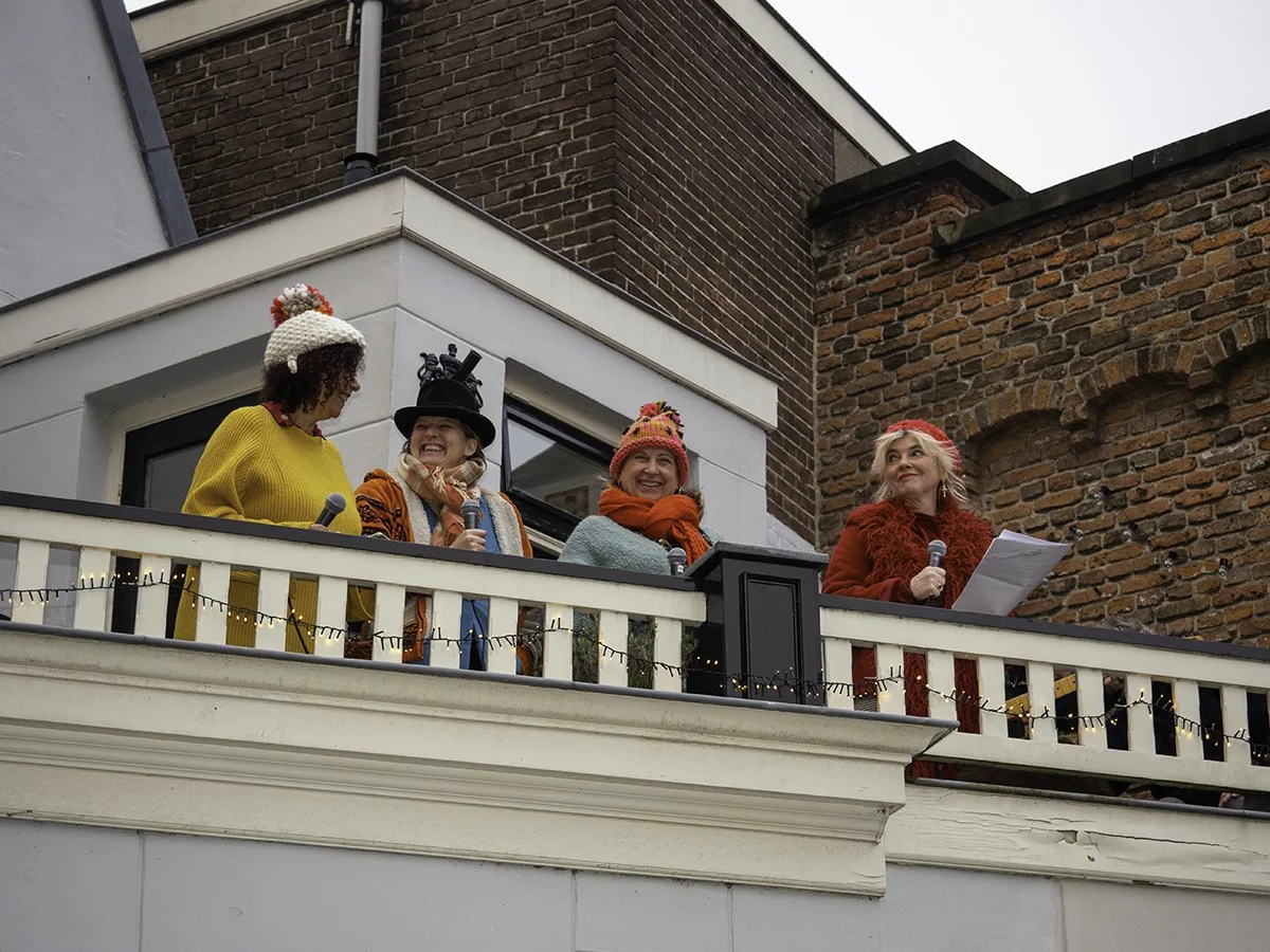 Bestuurders Annemarie Waterhout, Gerrie Hondius, Simone Lensink en Mylou Frencken gaan voor een protestsong 2022