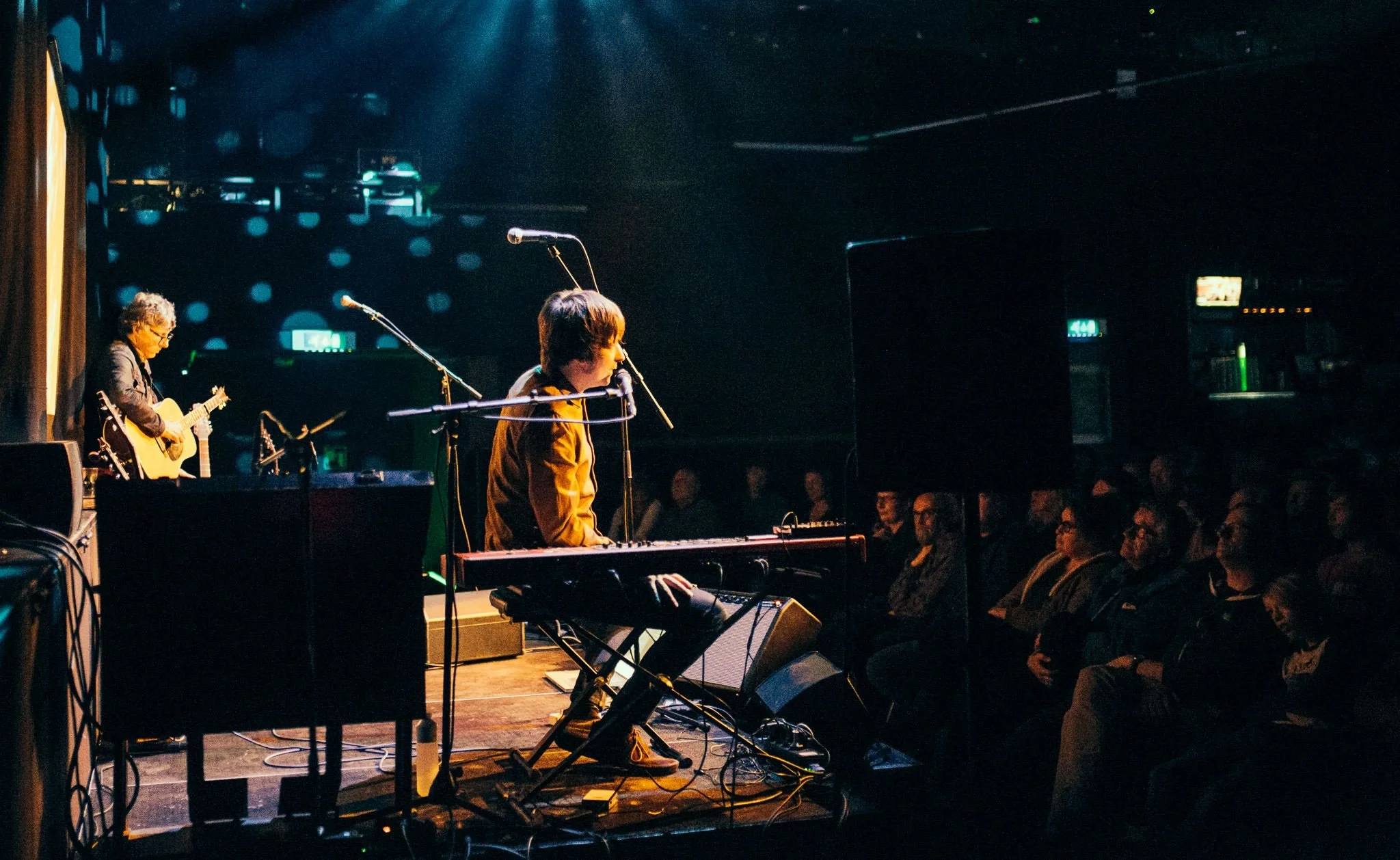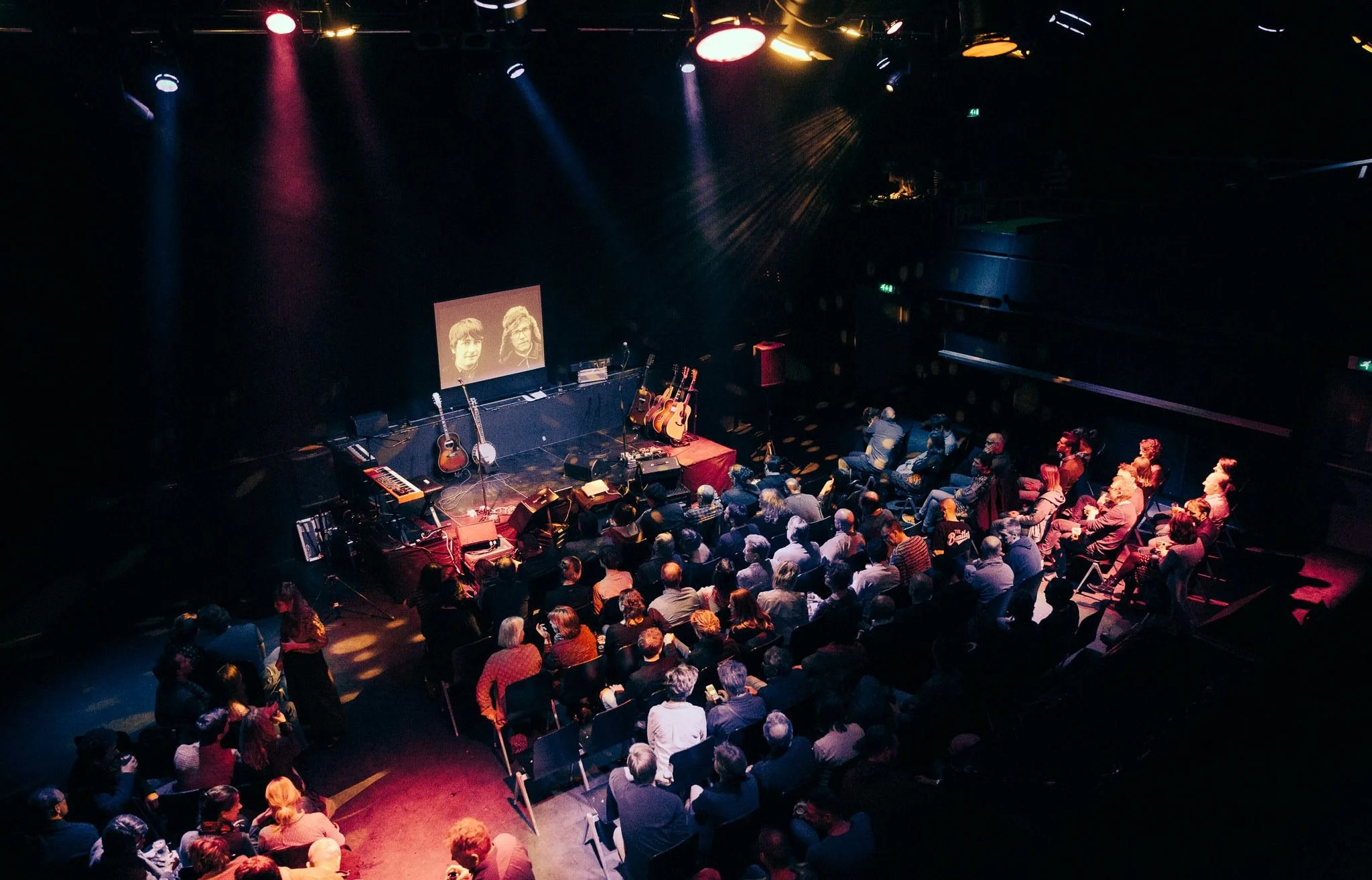 Het is even wennen als we de grote zaal in komen lopen, overal stoelen en een klein podium voor het “echte” grote podium. Toch ziet het er meteen gezellig, bijna huiselijk uit. Ook als Anne en Yorick de zaal binnenkomen blijft het kleinschalige gevoel hangen. De mannen vertellen om de beurt iets over het liedje dat gespeeld gaat worden en vooral over de vergeten held die het gemaakt heeft. Achter hen wordt door middel van een beamer een foto van de betreffende man op een scherm getoond. Het feit dat Yorick deze zelf met een afstandsbediening bedient, maakt dat we op een bepaalde manier het gevoel hebben dat hij zijn vakantiefoto’s aan ons laat zien. Dat laagdrempelige karakter is ook juist het sterke punt, je voelt je betrokken bij het verhaal en wordt meegenomen in de muziekgeschiedenis.
